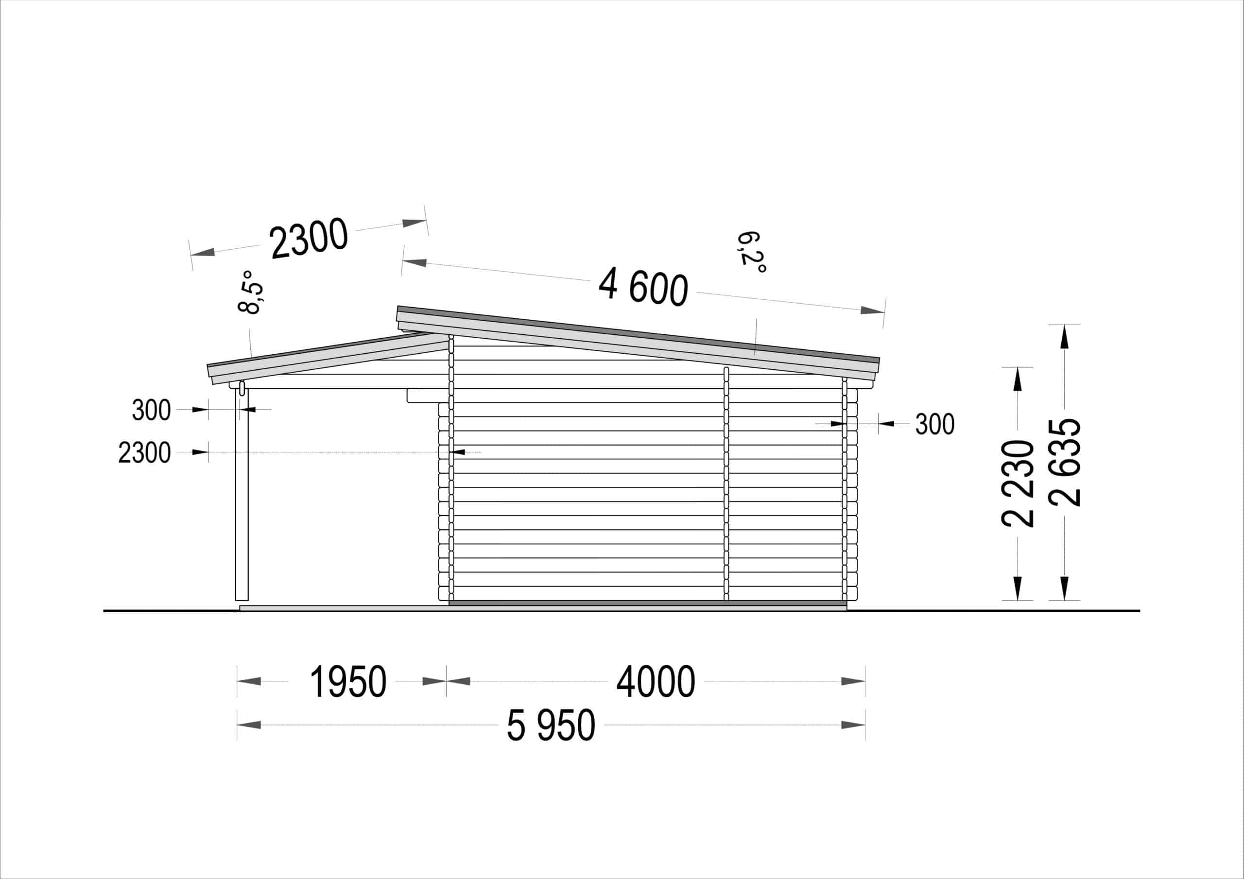 Gartenhaus HELENE 6x4m, 24m² mit 12.5m² Terrasse