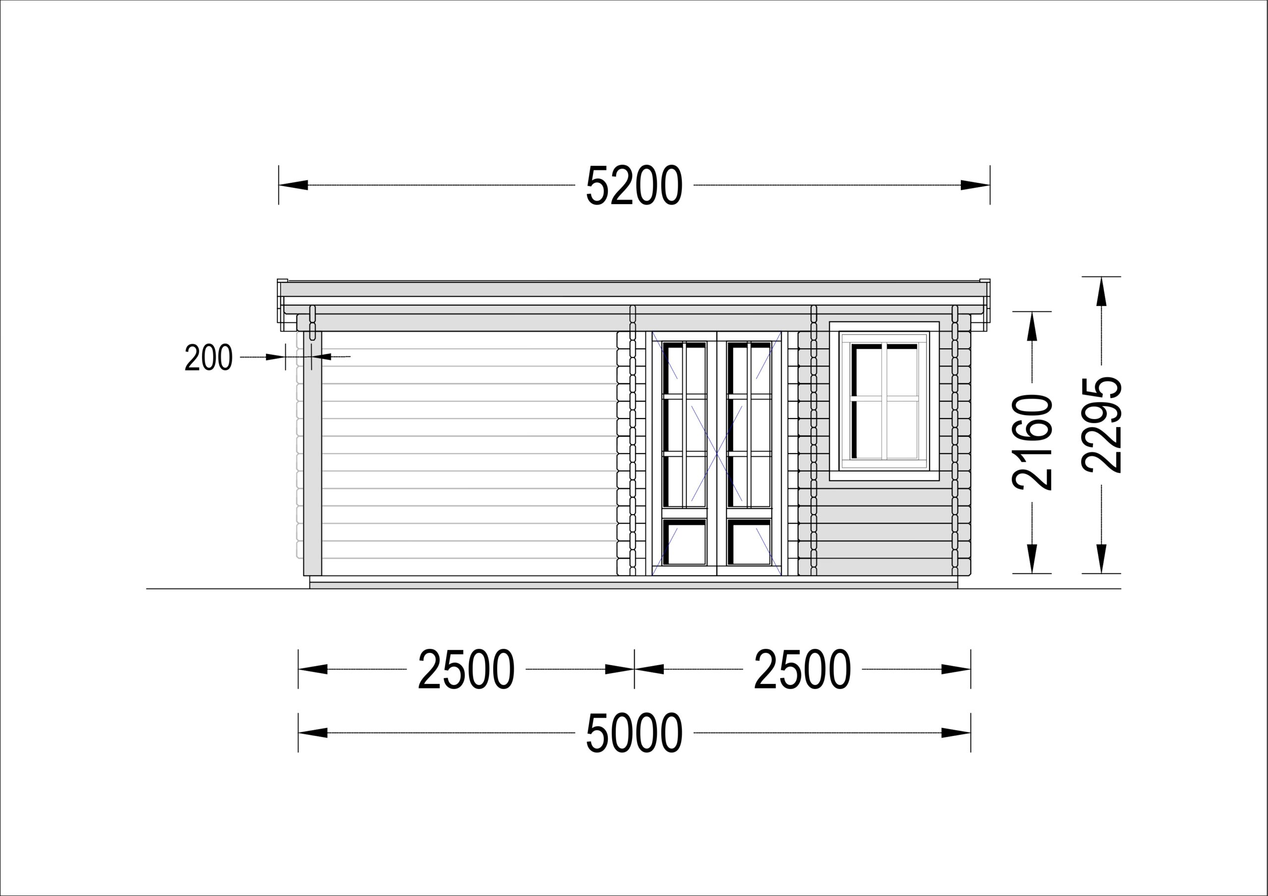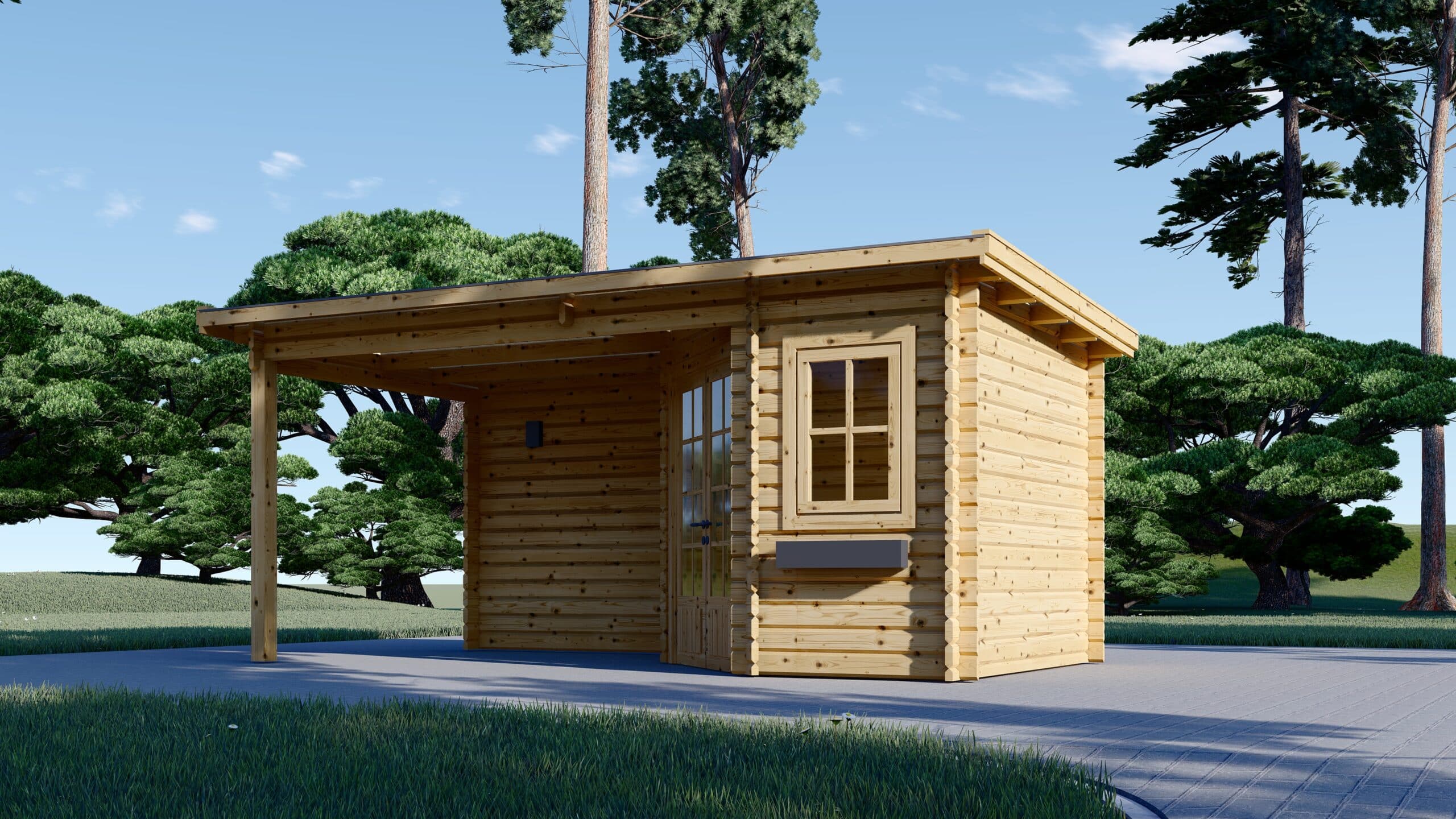 Gartenhaus mit Terrasse KATI (28 mm), 5×3 m, 7.5 m² + 7.5 m²