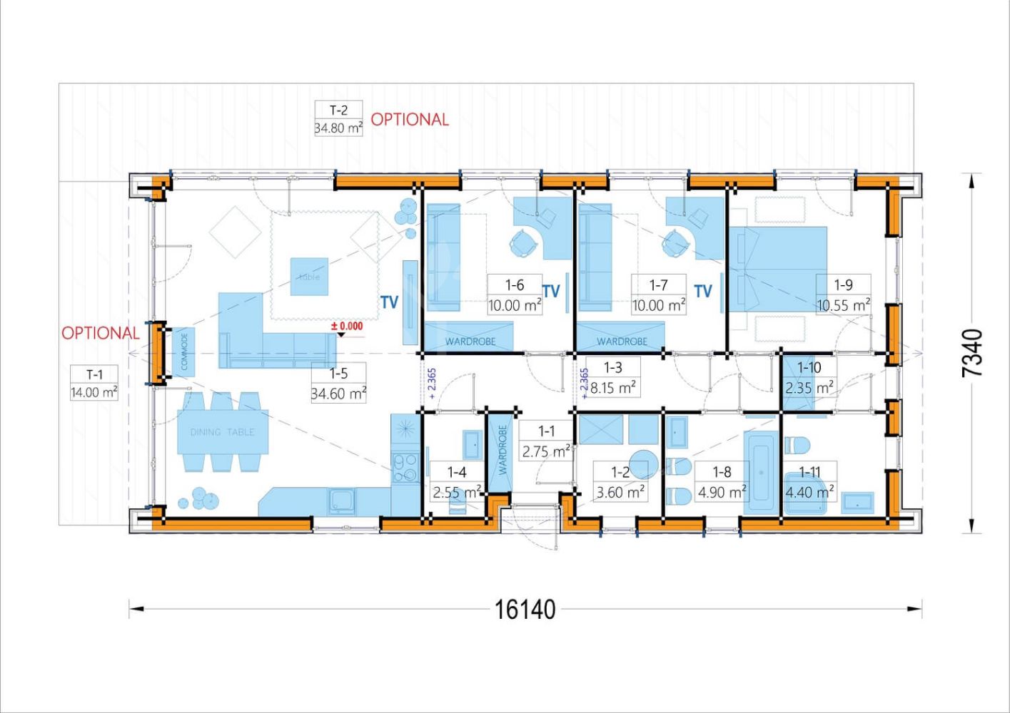 Holzhaus ROMAN(Isoliert, 66 mm + Holzverschalung), 93 m²