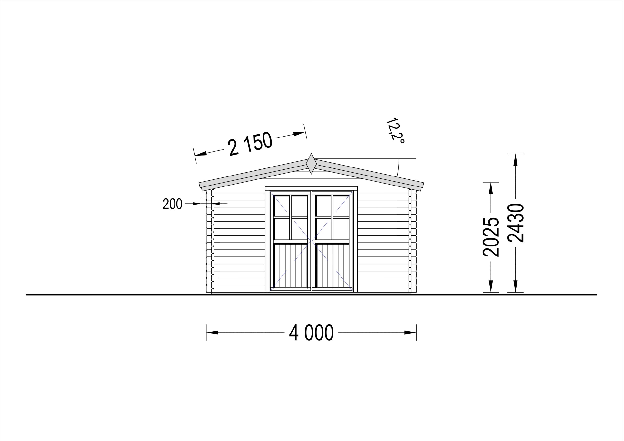 Premium Gartenhaus RUDI (34mm) 4x3m, 12m²